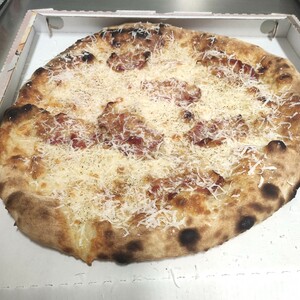 Mozzarella, pecorino, guanciale, pepe nero