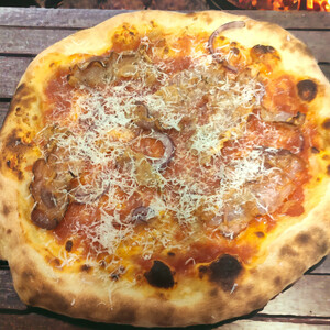 Pomodoro, mozzarella, prosciutto cotto, champignon