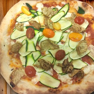 Pomodoro Rosso del Gargano 100% Italiano, basilico, mozzarella fiordilatte da latte 100% Italiano, provola affumicata, olio extravergine di oliva