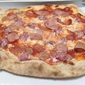 Pomodoro, mozzarella, salsiccia, wurstel, salame piccante